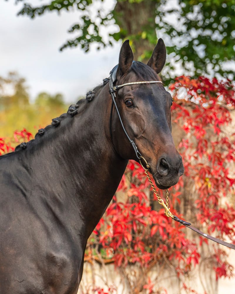 En stor härlig herre med gener för att kunna utvecklas inom dressyren! Massimo är mycket social i boxen och ”fipplar” gärna med allt han kommer åt. Att få fram den bästa och maffiga känslan hos Massimo kräver att ryttaren har en god fysik – men han bär även snällt på den lite mindre erfarna ryttaren och då med lägre växlar, perfekt!  Massimo är även med på våra hoppkurser. Massimo är tidigare opererad för struppipning och börjar ridpasset med att ”hosta” – låt honom göra det på en längre tygel så fungerar han som vanligt efter det. Hör du honom gnägga så vet du nu varför det låter så speciellt.